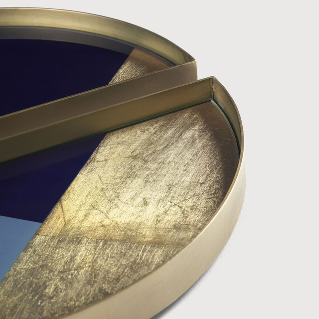 Trotz seiner kleinen Größe verpackt das Valley-Tablett aus Glas viele Muster und Texturen in seinen Rahmen. Satte Farben und luxuriöses Blattgold werden von schmalen Rändern umzäunt und jedes Design wird wie ein Kunstwerk eingerahmt. Die kompakte Größe des Valley-Tabletts ermöglicht es, es vielfach einzusetzen. Im Flur dient es als Schlüsselhalter. Im Badezimmer dient es als Schmucktablett. Auf dem Couchtisch dient es als dekorativer Artikel. Überall in eurem Zuhause ist es ein stilvolles Akzent setzendes Stück.