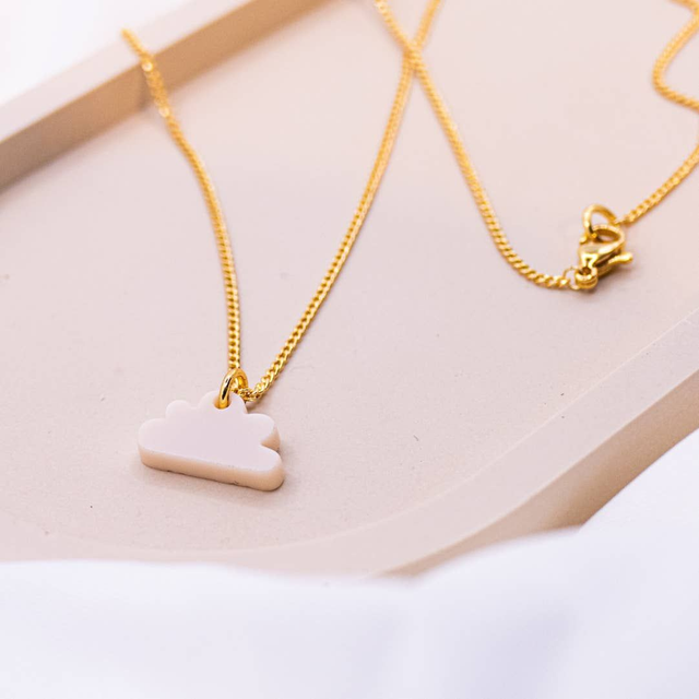 Halskette Wolken aus Acryl weiße Wölkchen - 18k vergoldet (Tilda & Theo)