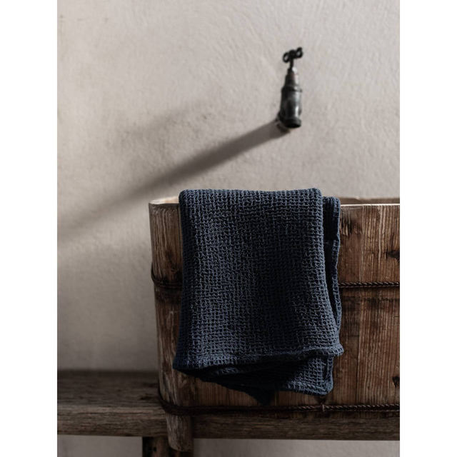 Weiches Handtuch 50x70 cm aus 100% Bio-Baumwolle. Nella ist ein waffelgewebtes Handtuch, das sowohl im Badezimmer als auch in der Küche verwendet werden kann. Waffelstoff hat fantastische Eigenschaften, die das Material für ein Handtuch geeignet machen. Waffelgewebe hat unter anderem eine gute Saugfähigkeit, trocknet schnell, ist strapazierfähig und hält lange. Das Waffeltuch Nella 50x70 cm hat zwei Schlaufen und ist in vier Farben erhältlich: Blau, Blauer Streifen, Taupe und Taupefarbener Streifen.